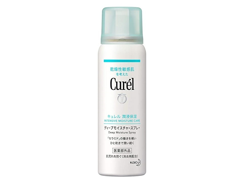 キュレルの「ディープモイスチャー スプレー」は、肌荒れ、カサつきを繰り返しがちな、乾燥性敏感肌に全身に使いやすい保湿スプレー。消炎剤(有効成分)が肌荒れを予防し、微細化したセラミド機能成分が、肌の奥(角層)まで浸透し、瞬時にうるおいをチャージしてくれる。