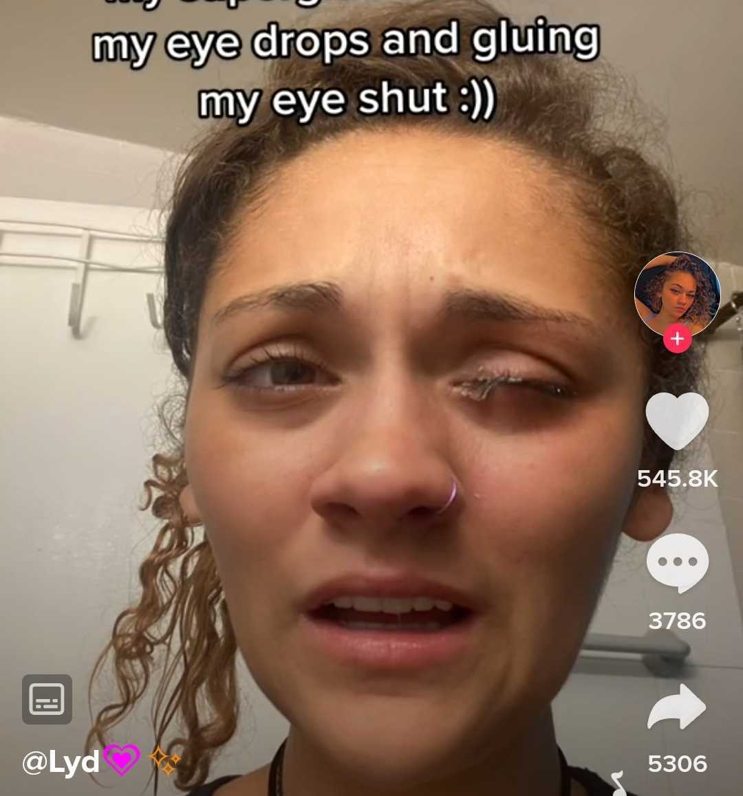 瞬間接着剤を目に入れてしまったリドの片目は完全に閉じた状態。すぐさま救急病院に搬送されて治療を開始することになり、その様子を自身のTikTokで紹介した。
