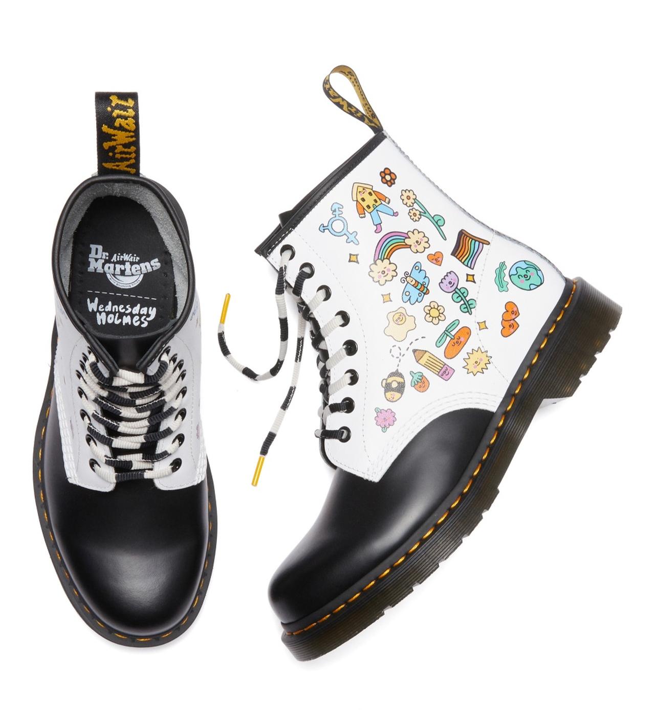 Dr. Martens(ドクターマーチン)が4月より展開している、PRIDEアーティストとの3ヵ月連続コラボ企画。最終月となるプライド月間に登場するのは、イギリス人アーティストWEDNESDAY HOLMESによるコラボブーツ。(フロントロウ編集部)