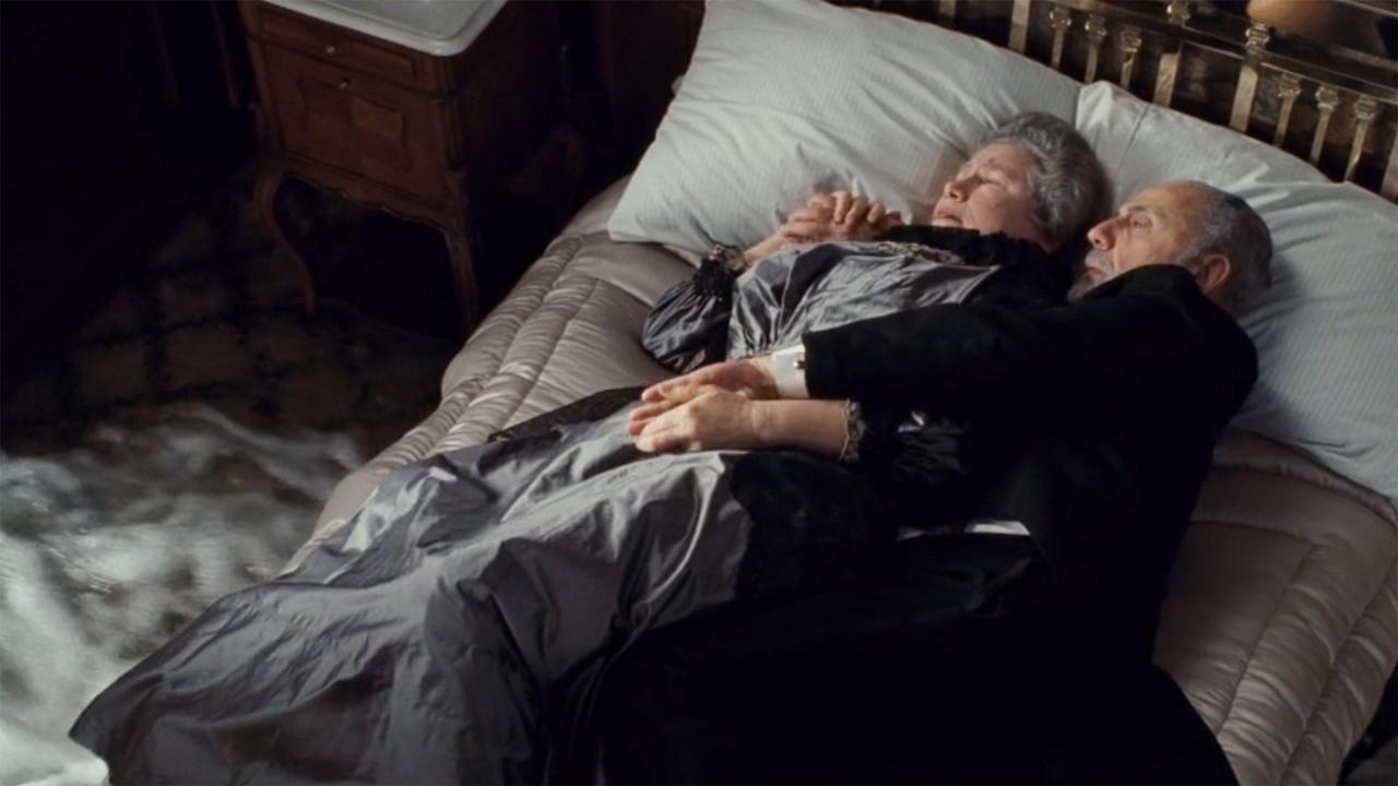 映画『タイタニック』で沈没していく船の中で老夫婦がベッドに横たわりながら夫が妻をバックハグしているシーンがあるが、これはイサドールとアイダのことのよう。