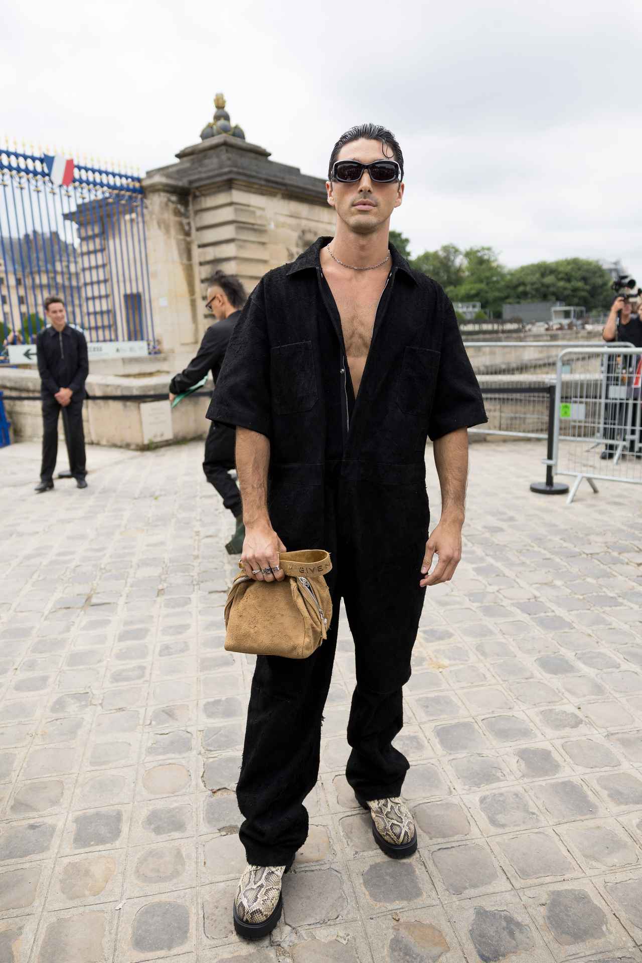 ちなみにジバンシィのショーでも素肌の上にジャンプスーツを着用しており、大胆に胸元を見せていた。