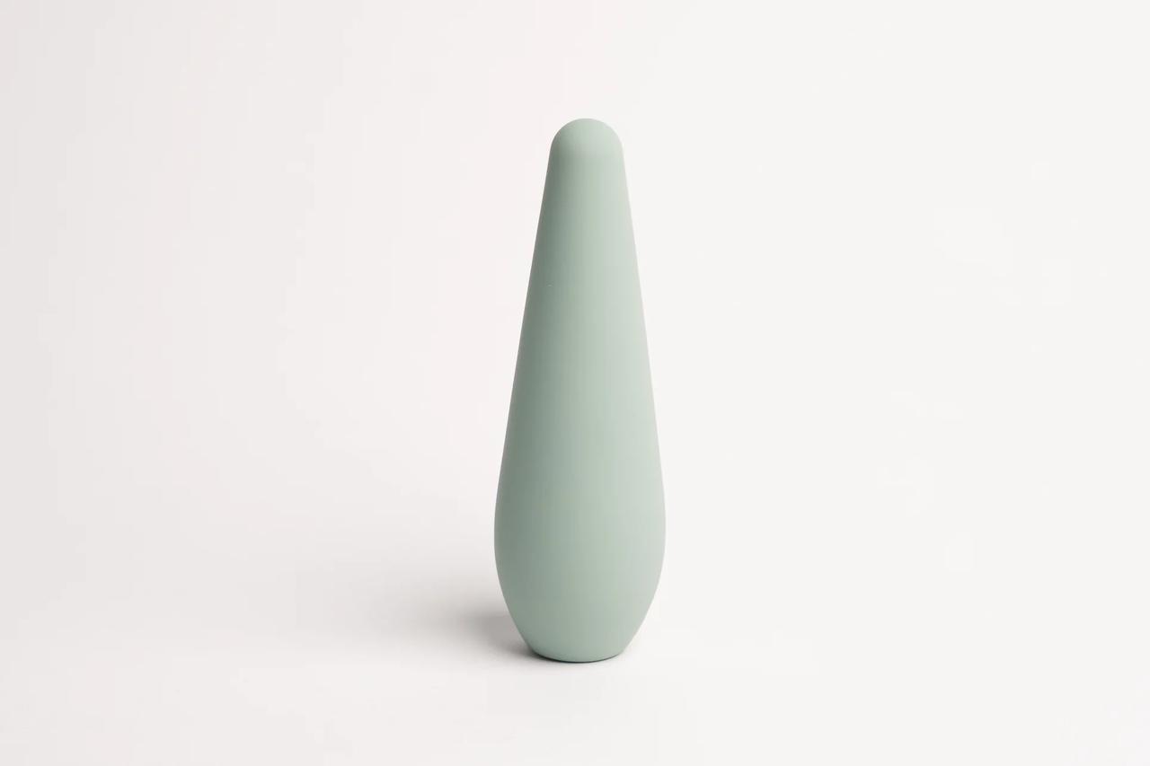 マットなパステルカラーのミントとライトグレーの2色展開で、形もプレジャートイに見えません。3段階のやさしいバイブレーションでピンポイントに好きなところをマッサージできる優れもの。