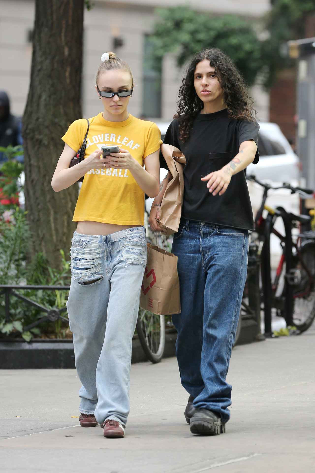 U-NEXTにて独占配信中のドラマ『THEIDOL/ジ・アイ ドル』でジョスリンを演じるリリー・ローズ・デップは、ニューヨークで恋人である070シェイクとデート。この日はお得意のローライズスタイル。