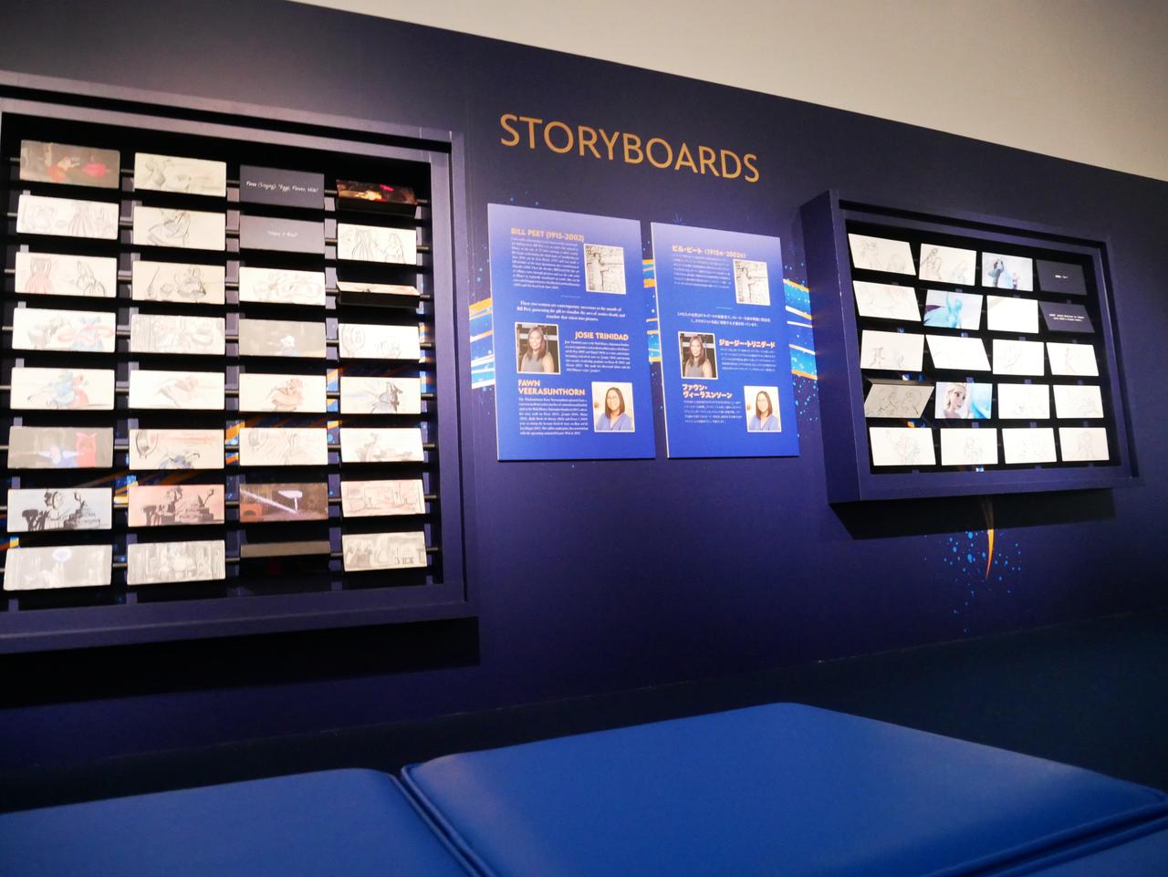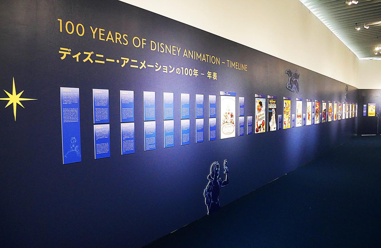 東京シティビュー内スカイギャラリーにはほかにも、ストーリーボードや背景画といった製作の舞台裏がのぞけるアカデミックエリアも。ここでは、ウォルト・ディズニー・アニメーション・スタジオが1937年に手掛けた1作目『白雪姫』から2023年12月15日公開の最新作『ウィッシュ』まで、100年にわたる長編アニメーション全62作品の米版ポスターが時系列順にずらりと並ぶ壁のディスプレイが圧巻だった。