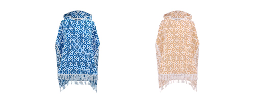 パターンが特徴的なカープ プラージュ・モノグラム フラワータイルは、ビーチでも快適に過ごせるフード付き。