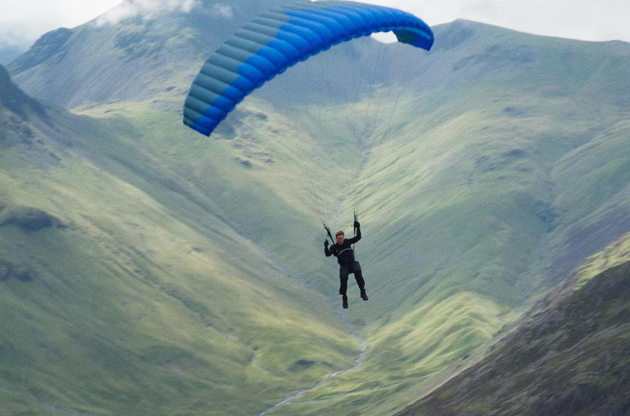 『ミッション:インポッシブル/ローグ・ネイション』(2015)からタッグを組み、公私ともに強い信頼関係を築くクリストファー・マッカリー監督が達観した表情で「トムは限界を知らない」と言うように、世界中のファンが待ち望む最新作で今回もまた生死に関わるレベルのこの激しいスピードフライングを「美しく繊細なスポーツだ」とどこか嬉しそうに表現するトムに対し、マッカリーとスピードフライングのコーディネーター、ジョン・デボアが「非常に危険でもある。スカイダイビングとは似て非なるものだ。スカイダイビングは予測できるが、スピードフライングは違う。小さなパラシュートで山を急降下する。地上すれすれをだ、少しの横風も危険になる」と対照的なほど冷静に説明する。