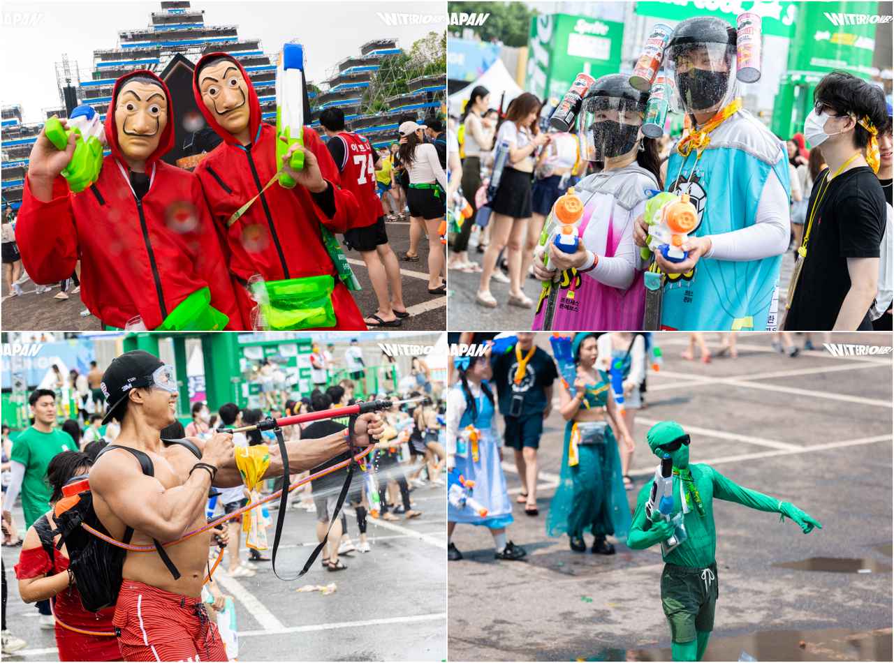 WATERBOMBは水鉄砲の持参OK&コスプレもOK。会場には水鉄砲に水を補給するエリアもある。自慢の水鉄砲&装いで特大ウォーターバトルに参戦して。