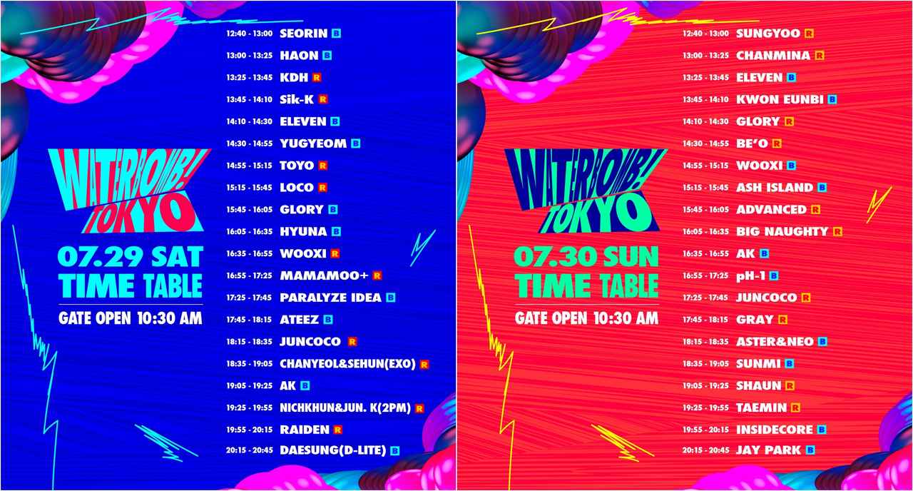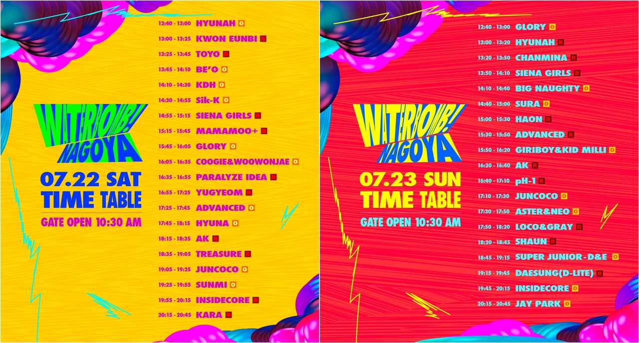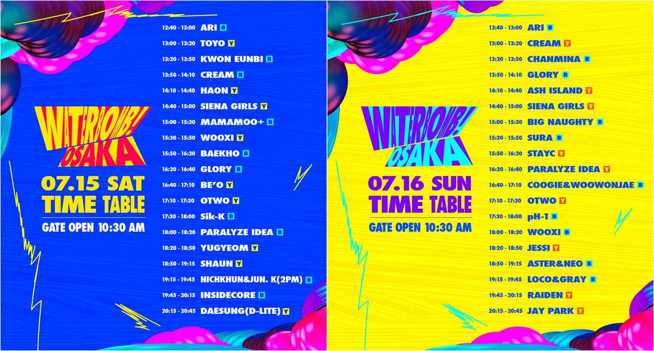⼤阪(7月15日・16日)、名古屋(7月22日・23日)、東京(7月29日・30日)のパフォーマーたちのタイムテーブルがコチラ。