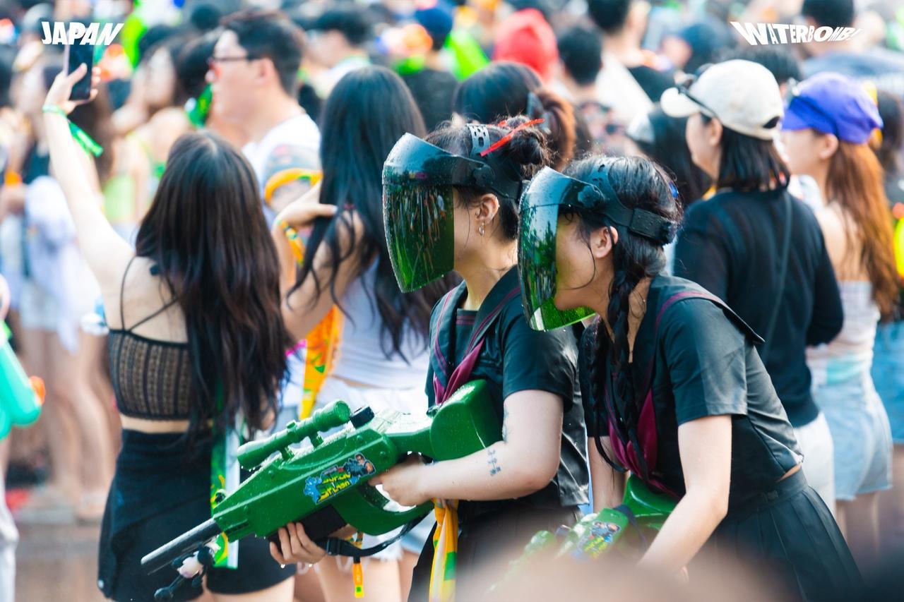 WATERBOMB JAPANでの水の量はレベル違い。チケット購入時に選んだチームごとにわかれて行なう水鉄砲バトル「ウォーターファイティング」に加えて、ステージに設置された強力なウォーターキャノンからは大量の水が観客に発射される。さらにパフォーマーたちも水鉄砲で観客を狙い、夏の暑さをスカッと吹き飛ばす。