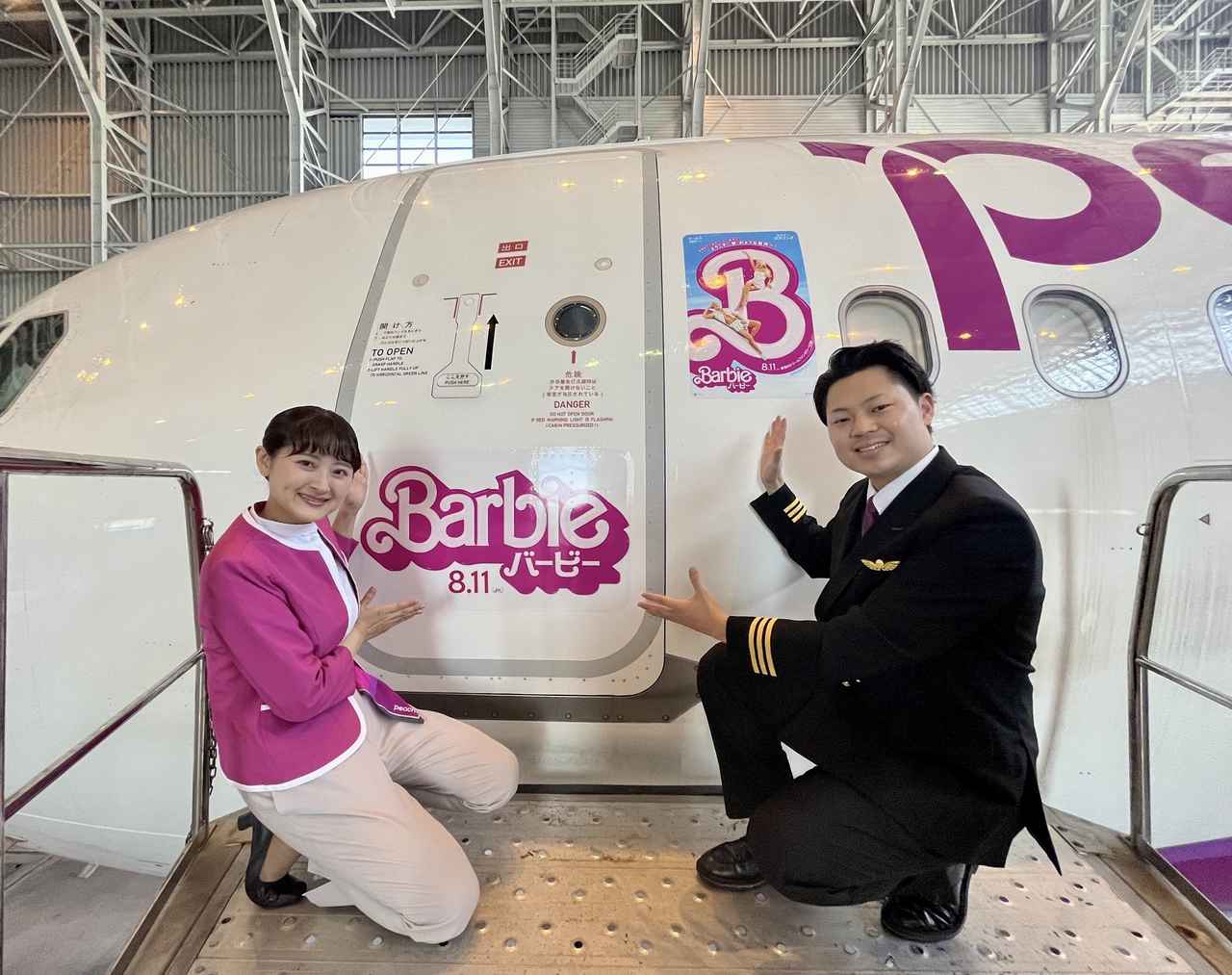 映画『バービー』の8月11日(金)公開を前に、同じくピンクがシグネチャーカラーPeach Aviation株式会社とのコラボ企画が発表された。(フロントロウ編集部)
