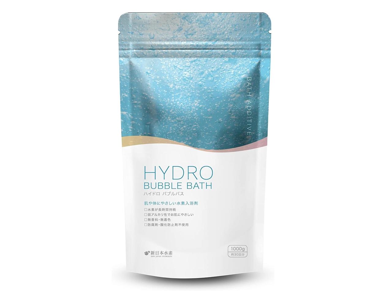 ハイドロバブルバスの「水素入浴剤」は、きめ細やかな泡となった高濃度水素が肌にまとわりつき、温浴体験が長続きする入浴剤。トロっとした肌触りで肌にやさしく、子どもから大人まで安心して使える。