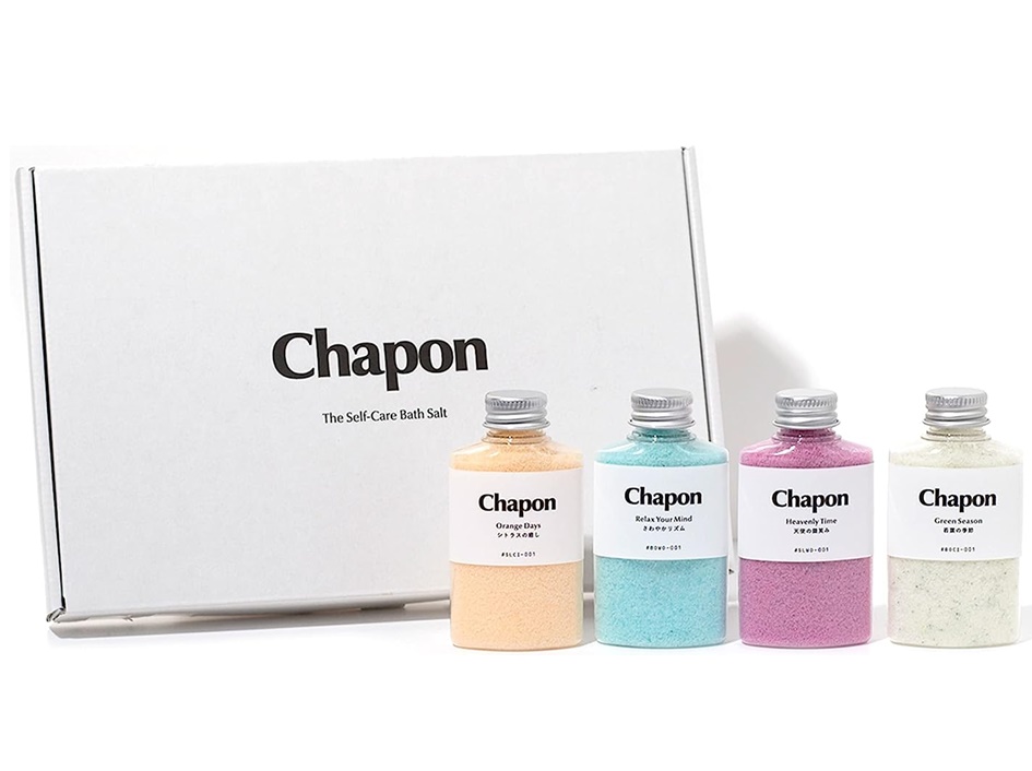 Chaponの「バスソルト」は、最大5種類の天然アロマを贅沢に配合。人工香料は一切使わず、貴重なエッセンシャルオイルのみを100%配合することで、今まで自宅では味わうことができなかった高級エステのような贅沢な香りの入浴体験を実現。