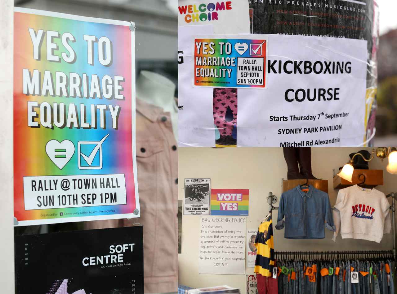 店先や電柱などオーストラリア中にYESと投票することを促すポスターやシールが登場した。