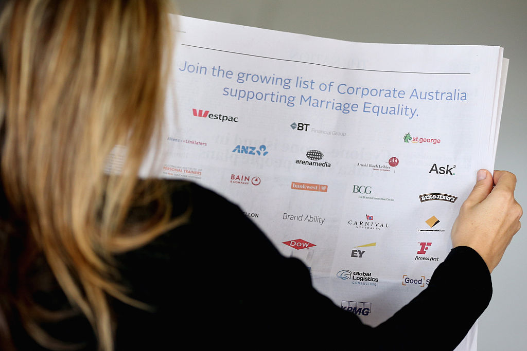 2015年、結婚の平等を支持する企業がその姿勢を示すために全国紙に広告を掲載。