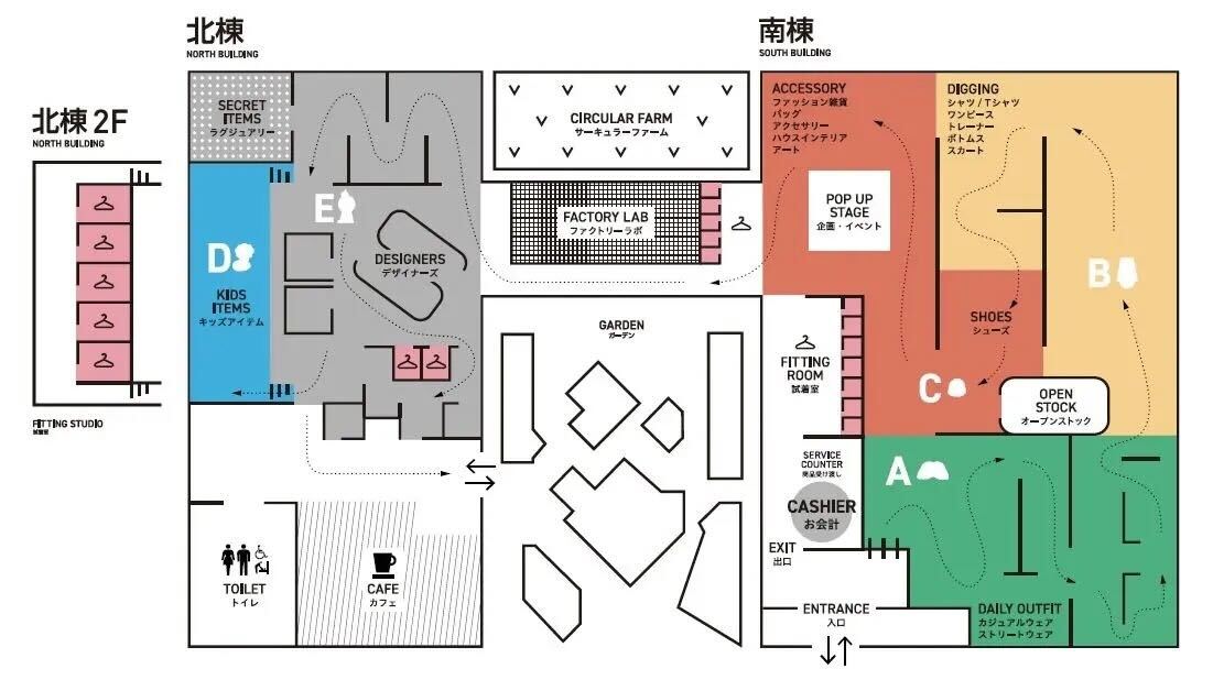 「KISARAZU CONCEPT STORE」は、A ZONE~E ZONEの大きく分けて5つのゾーンに分かれていて、それぞれのエリア内も細かく区画が区切られた、まるで迷路のような空間。