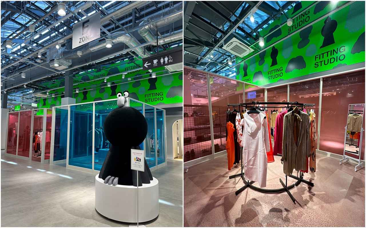 「洋服は着てみないと似合うかわからない」という考えのもと、施設内の複数個所にフィッティングルームを設置。カートの中にキープしたアイテムが溜まってきたら、近くのフィッティングルームへ。好きなように何着でも何度でもとことん試着することで、新しい自分を発見できる。