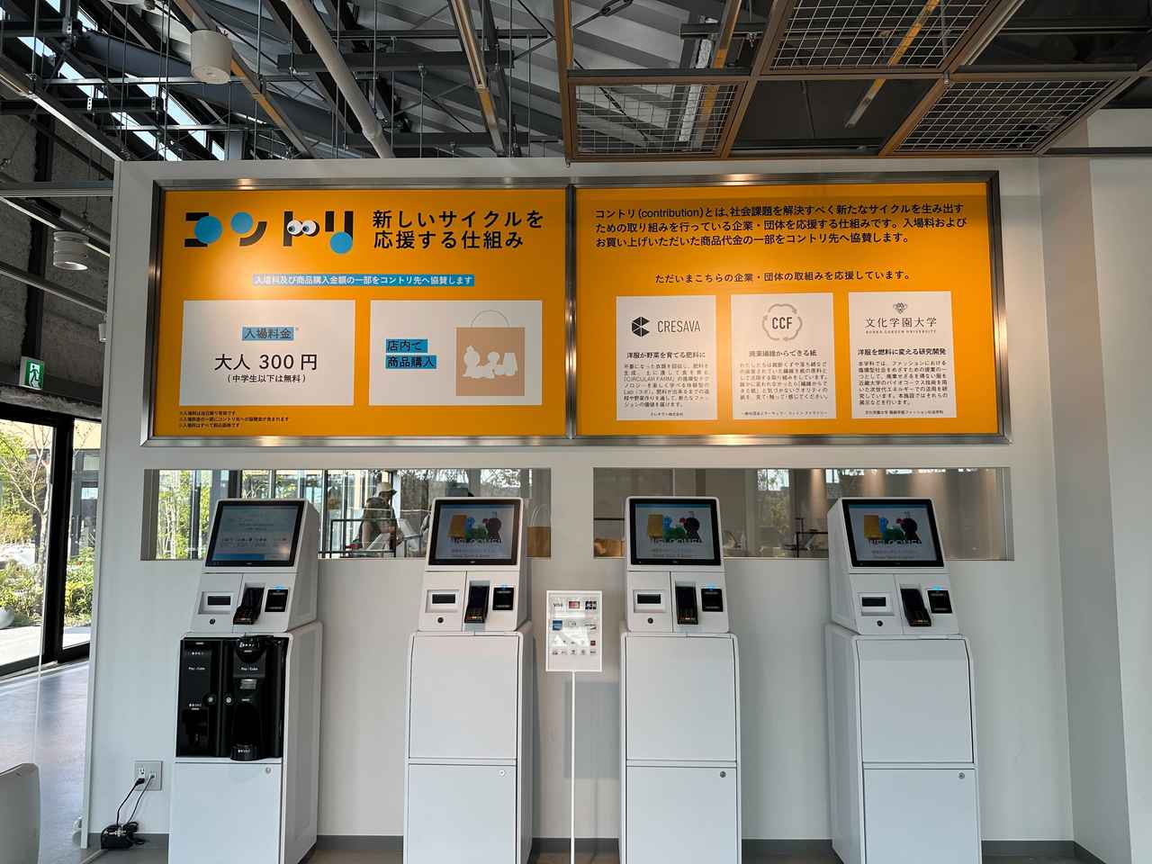 「KISARAZU CONCEPT STORE」に入場するには、大人は300円の入場券を購入するのがルール。じつはこの入場料は、社会課題を解決すべく新たなサイクルを生み出すための取り組みを行っている企業・団体の応援につながる「コントリ」という仕組み。