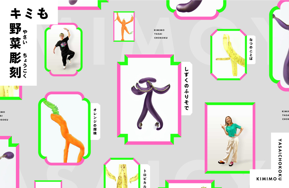 「カタチを見つめる 彫刻」② キミも野菜彫刻というコーナーは、写真撮影ができる体験展示。ブースで写真を撮ると、来場者自身が規格外野菜の彫刻作品に変身。変身する野菜は来場者の好きなものを選ぶことができ、画像は額装されてタイトルが付けられる。自分自身が野菜に“なってみる”ことで、自分の規格外な魅力が見つかるかも。