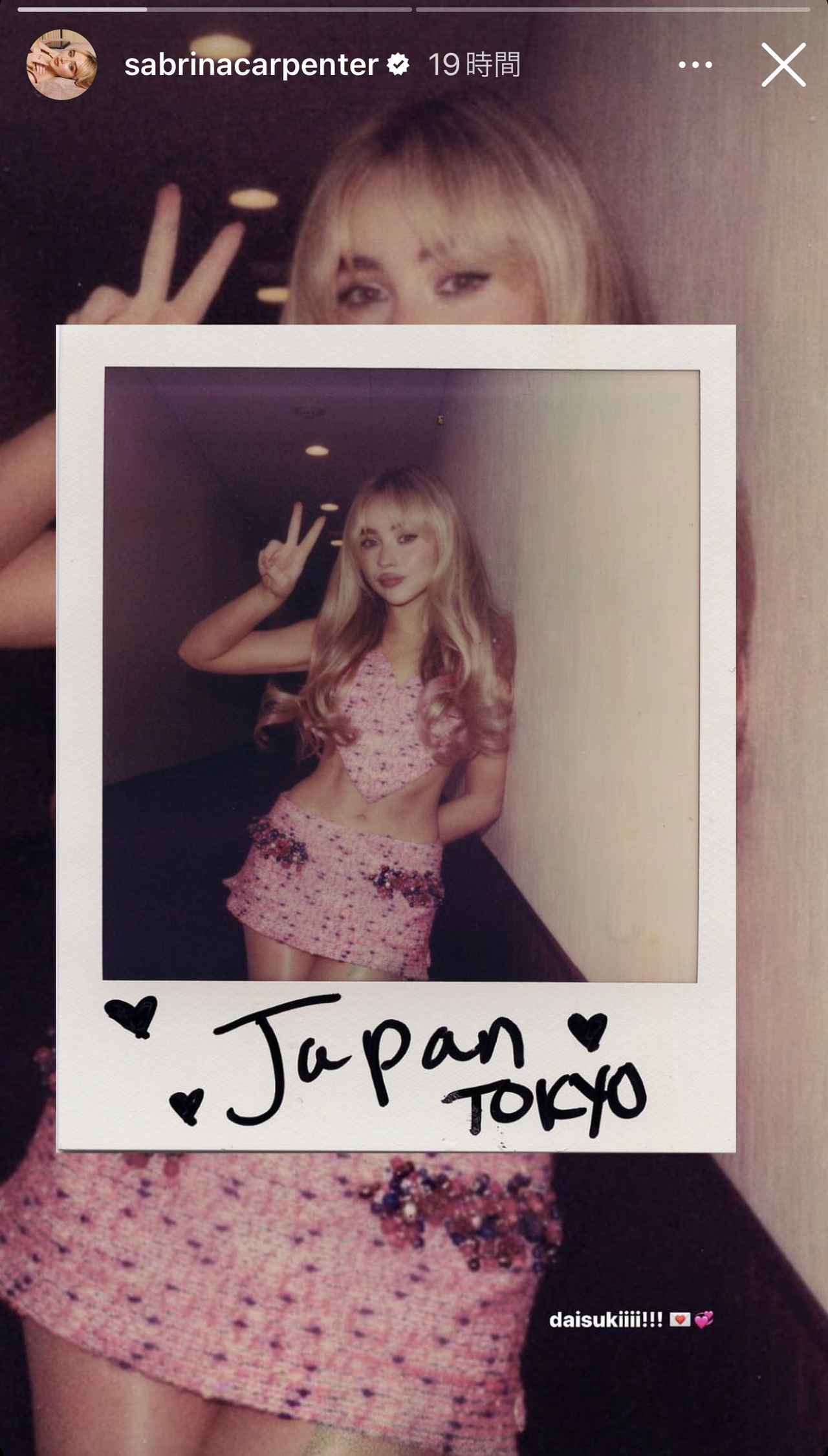 終演後にインスタグラムストーリーズを更新して、バックステージで撮影した写真を投稿したサブリナ。写真には「daisukiiii!!!」と日本語が添えられている。