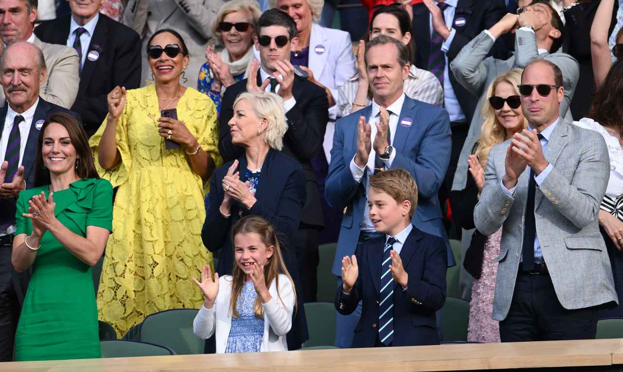 イギリス王室のウィリアム皇太子とキャサリン妃の長男ジョージ王子と長女シャーロット王女が、両親と一緒にロンドン郊外のオールイングランド・クラブで行われたウィンブルドン選手権の男子シングルス決勝を観戦した。