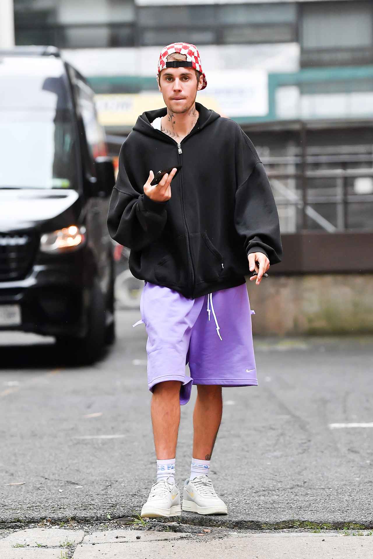 ジャスティン・ビーバーが路上で小休憩