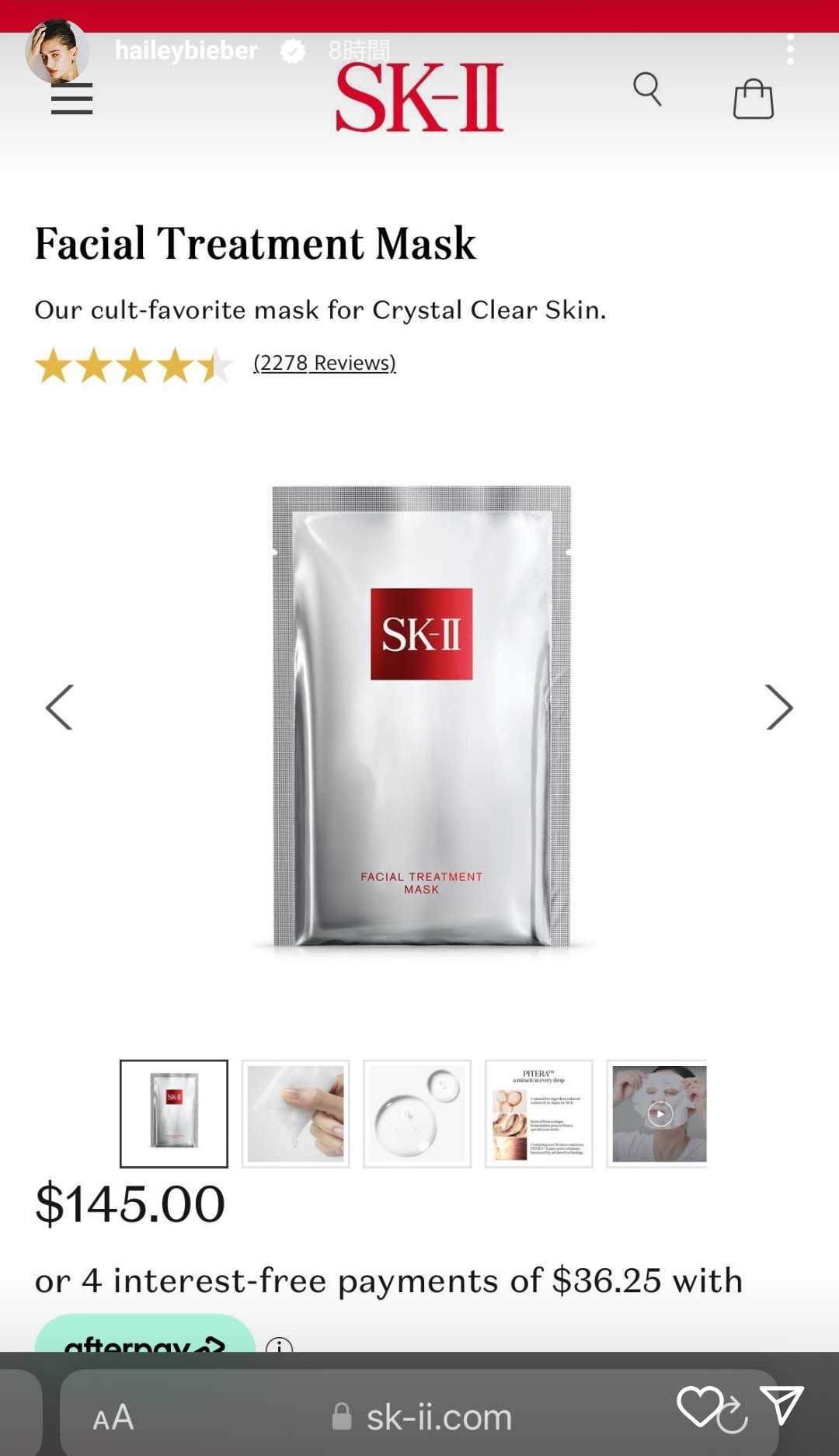 角質を取るためのピールマスクからはじまり、パック、保湿へと移るのだが、この時ヘイリーが使っていたフェイスパックは、日本を代表するスキンケアブランドSK-IIの「フェイシャル トリートメント マスク」。日本でカルト的人気を誇るSK-IIは海外でも人気が高く、セレブの愛用者も多いが、ヘイリーもそのひとり。