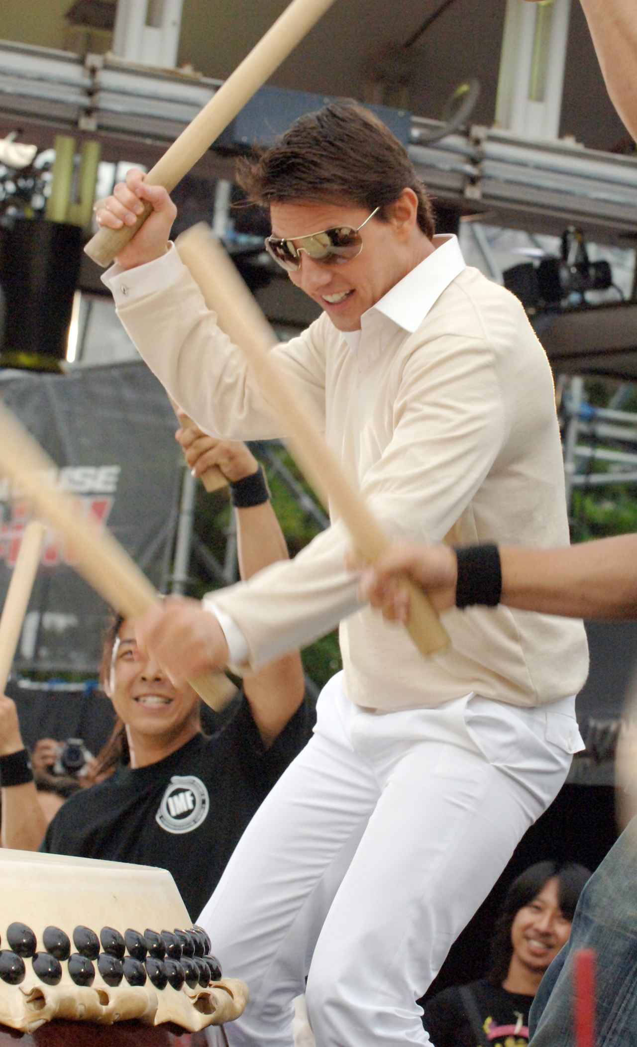 和太鼓の演奏シーンでは、自分もバチを持って挑戦。途中で、スーツのジャケットを脱いで“マジモード”に。トムらしいサービス精神で観客を大興奮させた。