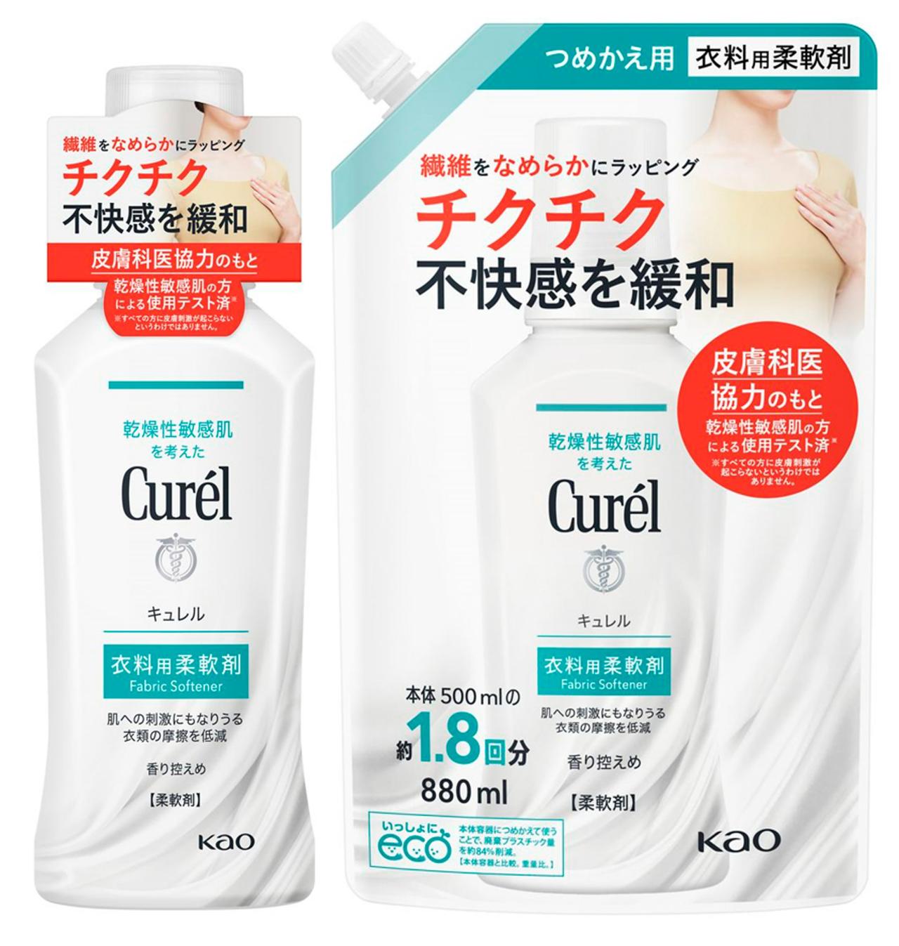 キュレル 衣料用柔軟剤 500ml 660円、詰め替え 880ml 880円(すべて税込)※編集部調べ