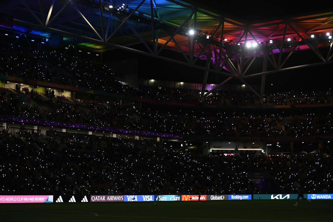 さらに選手のほかにも、開催国もレインボーカラーをピッチに登場させている。7月22日にブリスベンで行なわれたイングランドVSハイチ戦では、ハーフタイム中にスタジアム側が屋根付近をレインボーカラーにライトアップした。