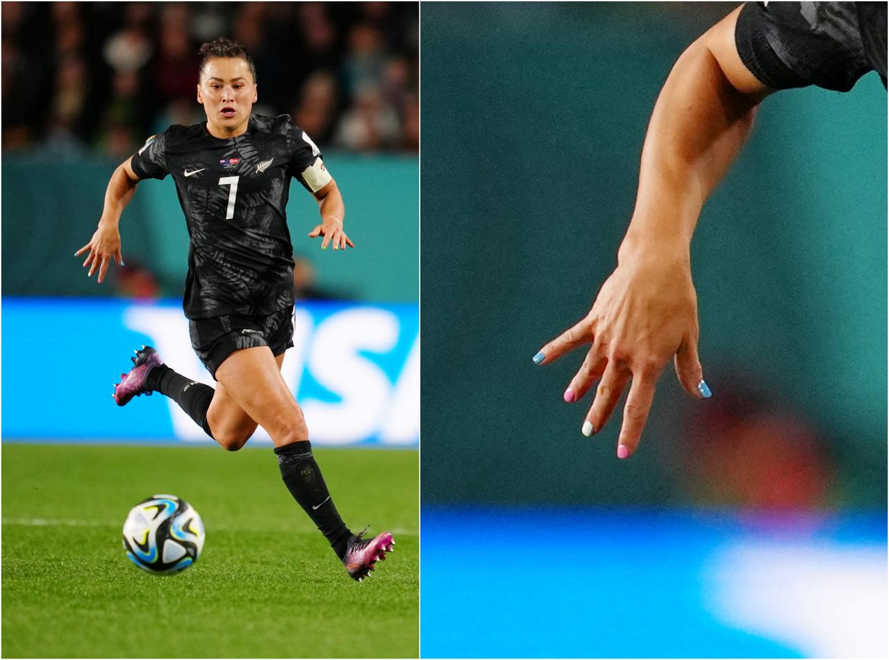 そんなワールドカップ前に、レインボーカラーの腕章を着けられたら「光栄だ」と米CNNに語っていた、ニュージーランドのキャプテンであるアリ・ライリー選手は、片方の手のネイルをレインボーフラッグ・カラーに、もう片方の手のネイルをプライドフラッグ・カラーに塗ってプレー。