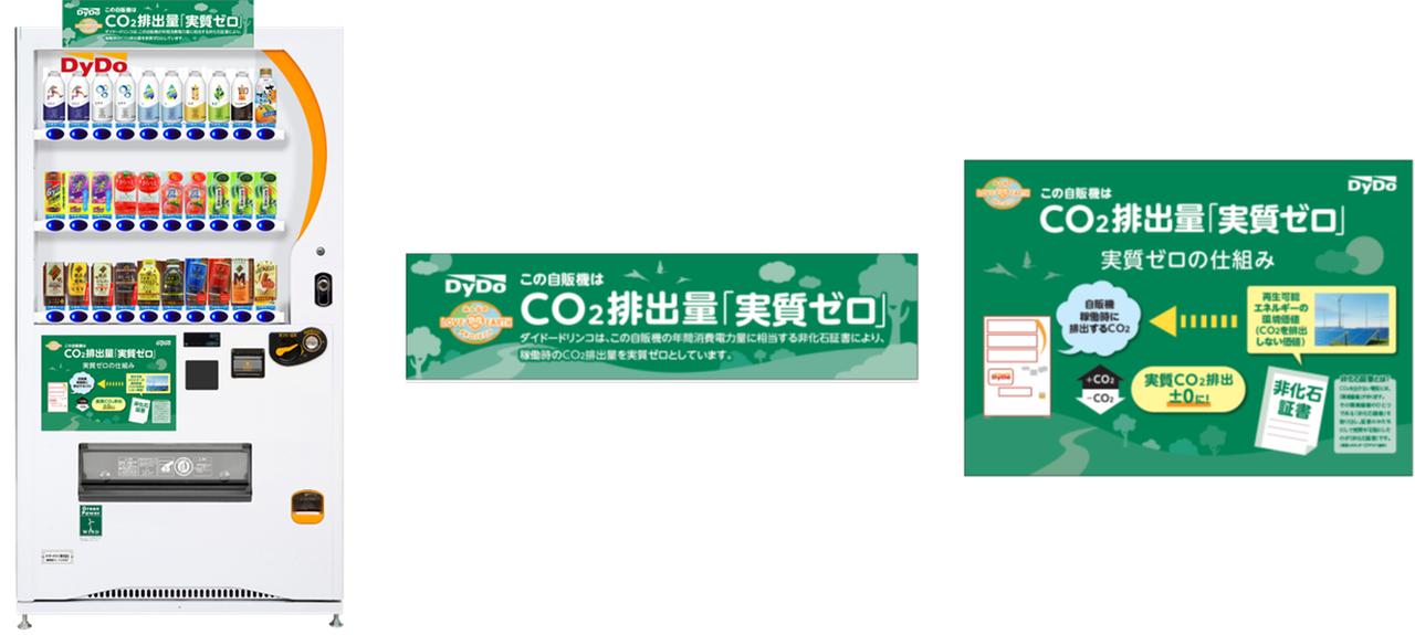 年間消費電力量に相当する「再エネ指定の非化石証書」で、自販機稼働時のCO₂排出量を実質ゼロにするカーボンニュートラルを実現している。