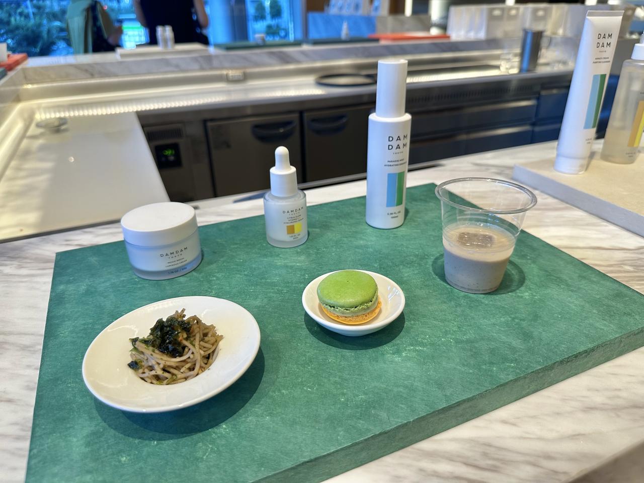 レセプションパーティーではメニューの一部を試食し、その美味しさに感動。DAMDAM TOKYOの製品からインスパイアされたというだけあって、選び抜かれた極上の素材のよさと和のムードを感じることができる。