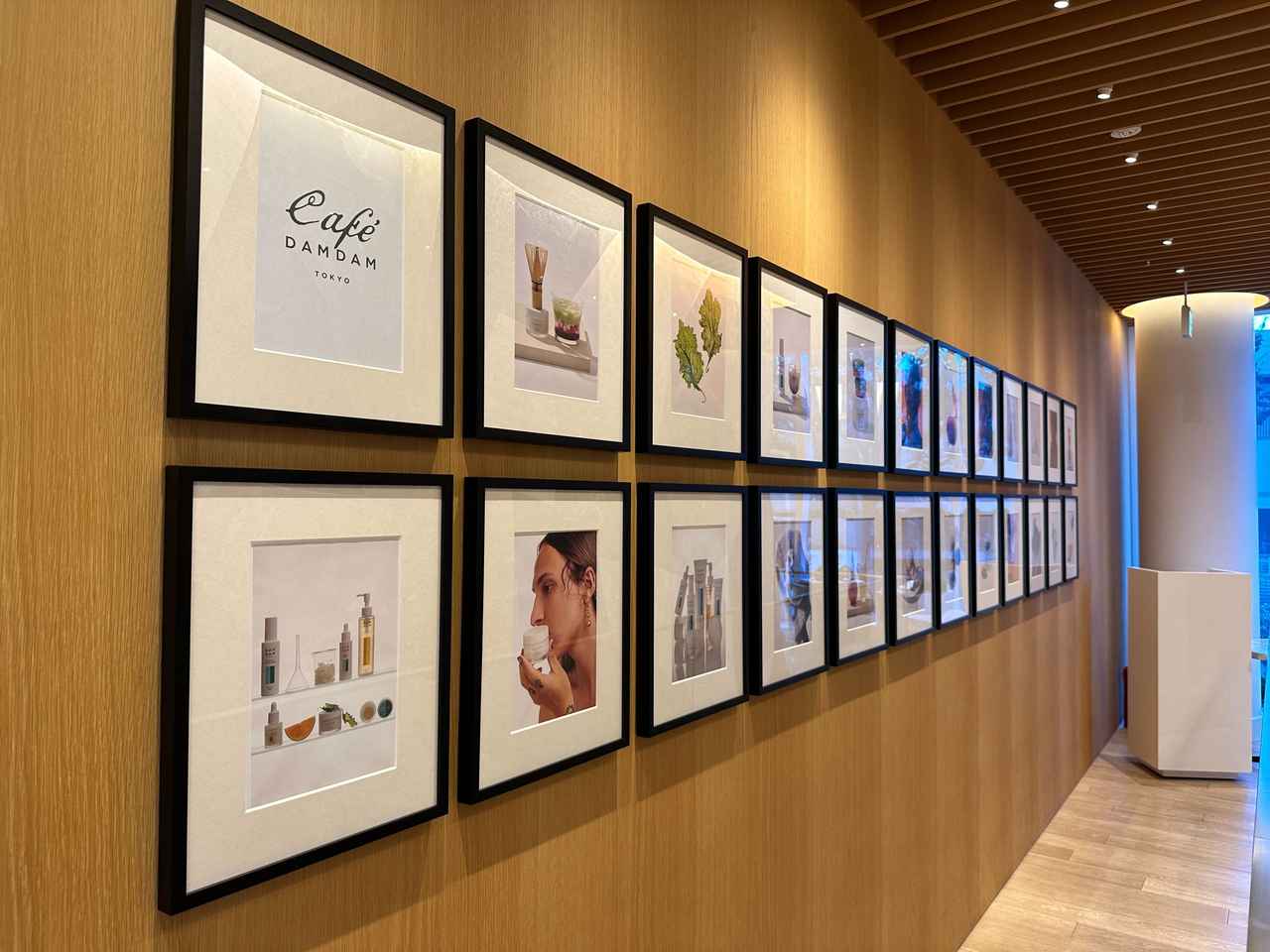 ピエール・エルメ・パリ 青山の階段を上ると展示されているのが、DAMDAM TOKYOのこれまでのビジュアル。ブランドのファンでもあるエディターは思わず写真をパシャリ。
