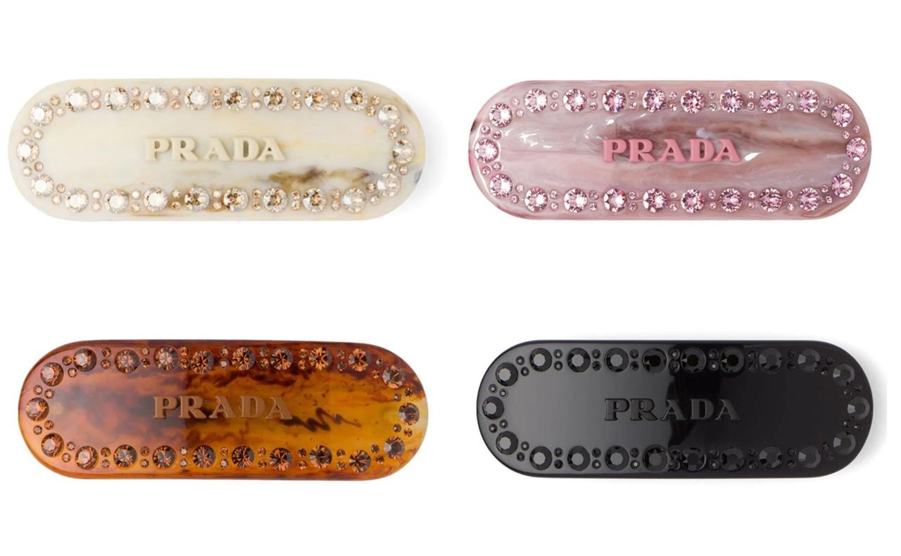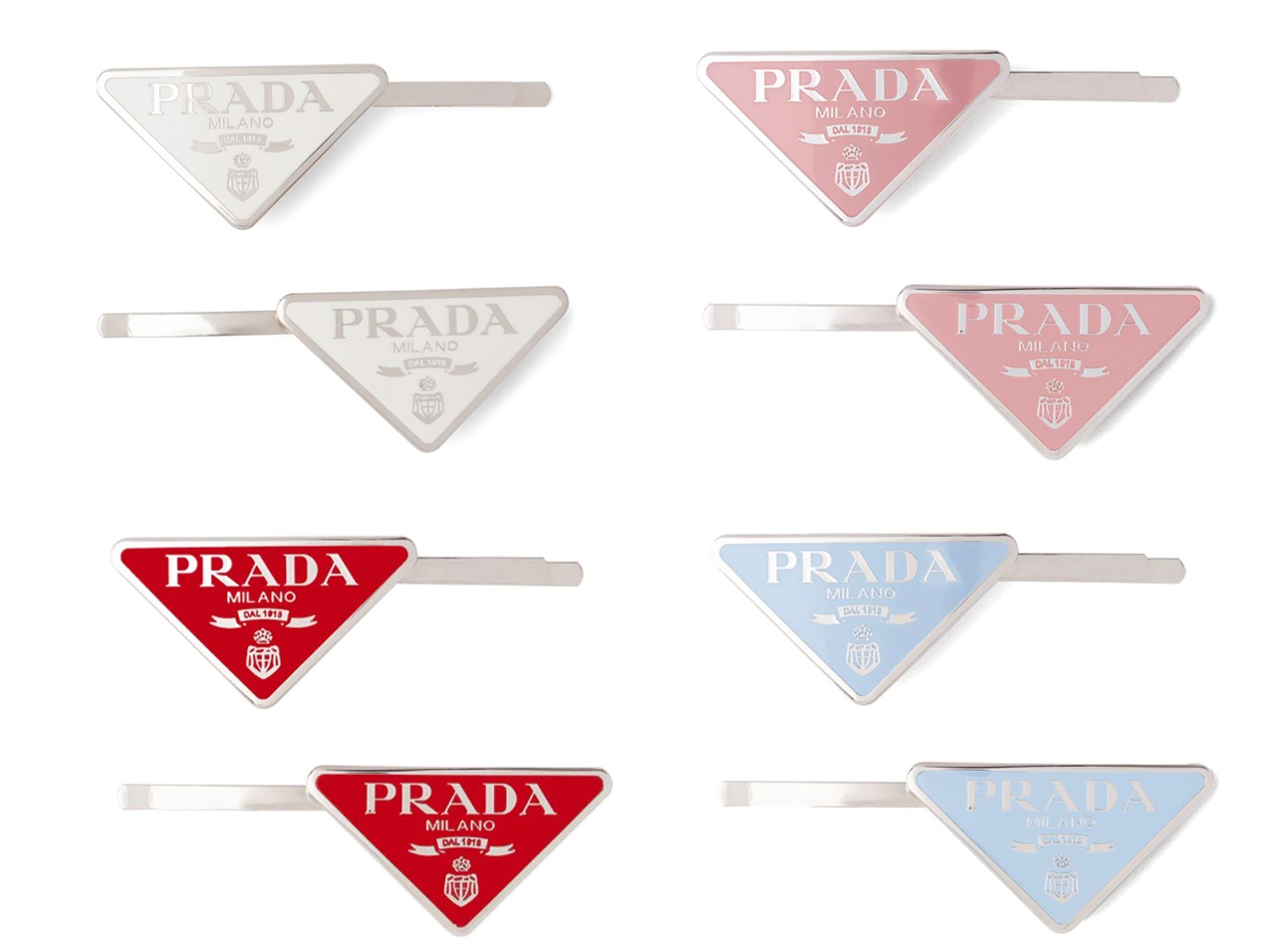 近年とくに多くのファッショニスタたちが指名買いしているのが、イタリアを代表するファッションブランドであるプラダ(Prada)のヘアアクセ。アイコニックなトライアングルロゴをあしらったカチューシャやヘアピンなど、毎シーズンのようにトレンド入りしている。