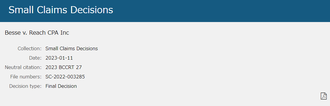 カナダのブリティッシュ・コロンビア州に本社を置く会計事務所リーチCPAで働いていた女性が解雇後に支払いを求めて会社を訴えたところ、盛大なブーメランが返ってきた。