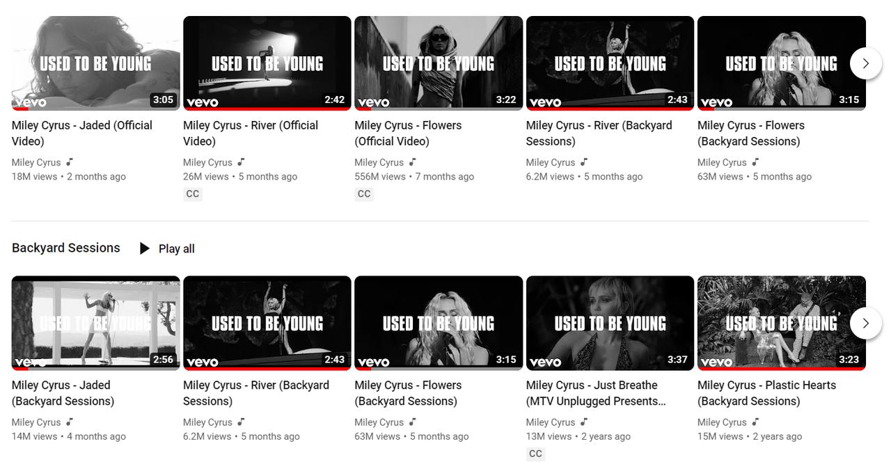 加えて、現在、マイリーのYouTubeチャンネルではすべてのミュージックビデオのサムネイルが白黒になり、「USED TO BE YOUNG」というメッセージが表示されている。