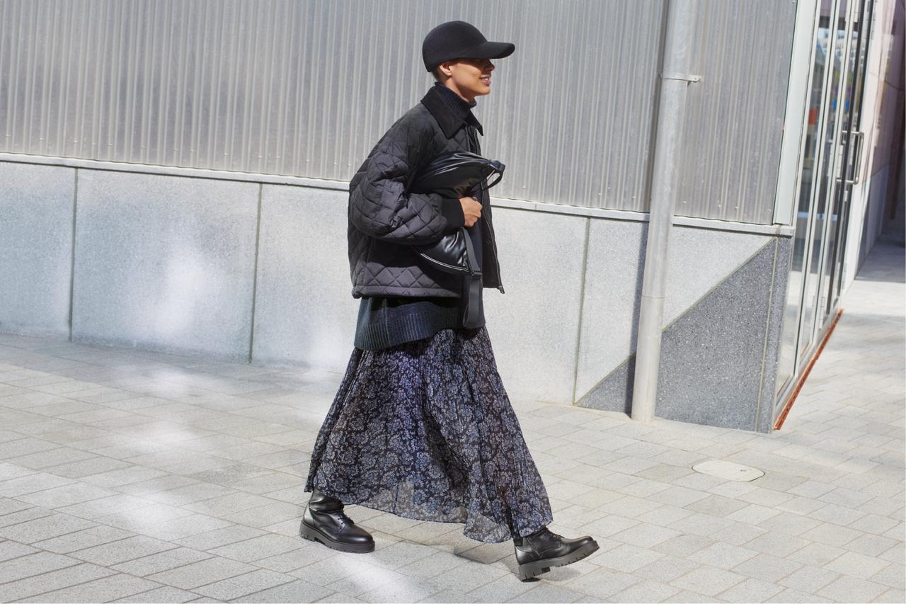 カジュアルなパンツ、繊細な花柄やペイズリープリントが際立つシフォンプリーツスカートとドレスは、リラックスシルエットのニット、コンパクトなカーディガン、ボーイフレンド風のハーフジップセーターなどと合わせて。