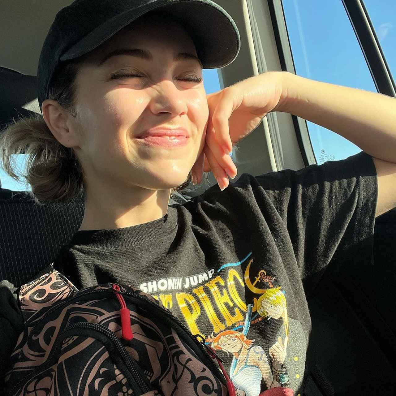 「撮影初日」という投稿。初日は『ONE PIECE』Tシャツで“正装”していったよう。©Emily Rudd/Instagram