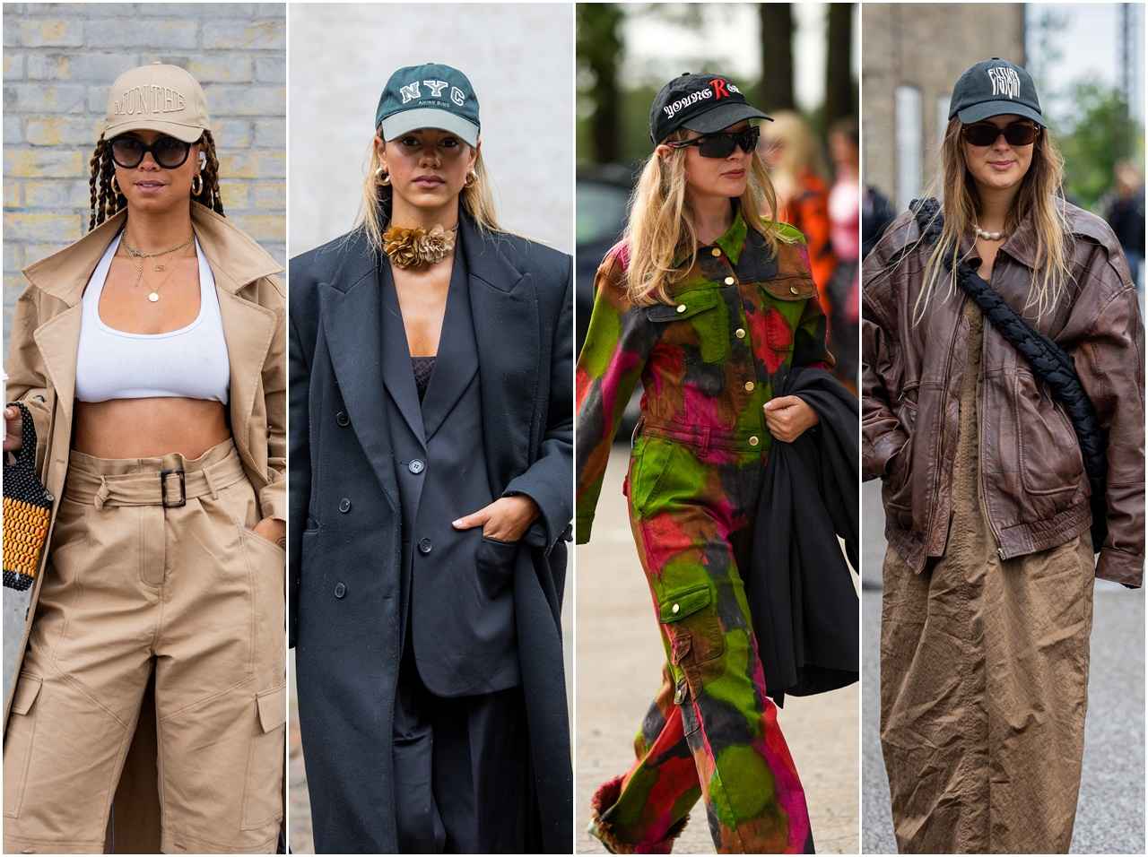 そのほか帽子では、引き続き刺繍でロゴをあしらったベースボールキャップもトレンドが継続。浅めのシルエットのキャップをチョイスするファッショニスタが多かった。