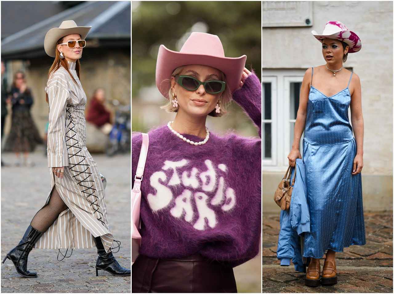 今回のファッションウィークでは、テンガロンハットも人気が高かった小物。つばが反りあがったカウボーイ風のテンガロンハットを主役にしたコーデを披露するファッショニスタが多数。