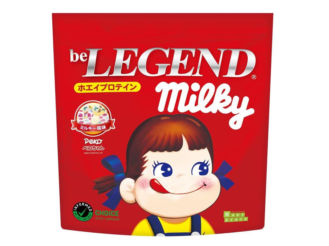 甘くて美味しいプロテインを選びたい人には、be LEGEND(ビーレジェンド)史上もっとも甘い「ホエイ プロテイン ミルキー風味」。不二家とのコラボレーションにより、ミルキーに実際に使われている練乳を使用し、甘さを引き出した。ホエイプロテインとの相性もよく、甘いけれど後味スッキリ、甘さを求める人にとって理想の味を実現。