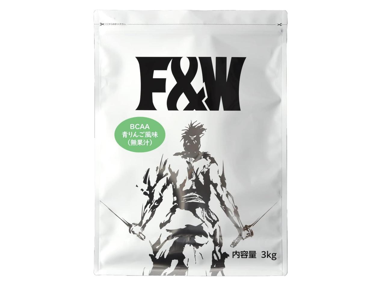 F&W(エフアンドダブリュー)の「BCAA」は、抜群のコストパフォーマンスを実現しつつ、BCAAの配合率が1食分10gあたり約86%という高い配合量、さらに1:2:1の黄金比で配合。毎日飲んでも飽きない豊富なフレーバーも魅力。