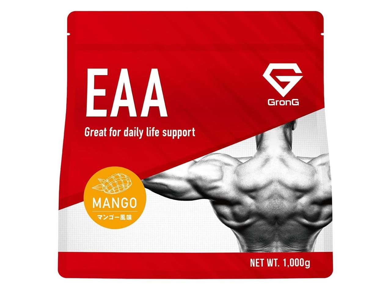 GronG(グロング)の「EAA」は、8種の必須アミノ酸と、2種の非必須アミノ酸を配合。BCAA(バリン・ロイシン・イソロイシン)も含まれており、ワークアウトを徹底サポート。マンゴー、ヨーグルト、グリーンアップル、レモン、グレープなどフレーバーも豊富。