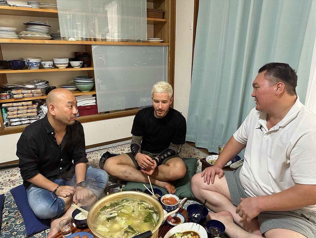 武道やエクストリームスポーツ好きのタズは、日本にやってくるとすぐに宮城野部屋を訪問。第69代横綱の白鵬が見守るなか、力士たちと一緒に稽古を体験すると、「まだ日本に来て24時間も経っていないけど、もうこの場所に恋をしている!」とインスタグラムで報告。宮城野部屋でちゃんこ鍋を振舞われたタズは、その席で、納豆にもトライ。ほかにも自家製キムチが気に入ったよう。