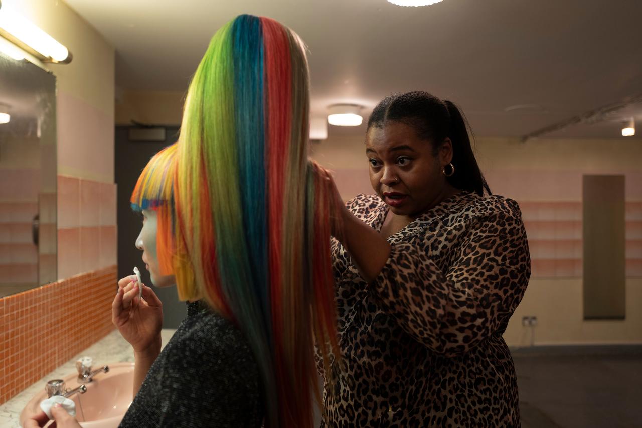 『メドゥーサ デラックス』の舞台は、ヘアスタイリストのコンテスト会場。俳優たちの豪華絢爛なヘアスタイリングを手掛けたのは、レディー・ガガのヘアを担当したことでも知られ、ファッション界で“魔術師”と称されるヘアスタイリスト、ユージン・スレイマン。