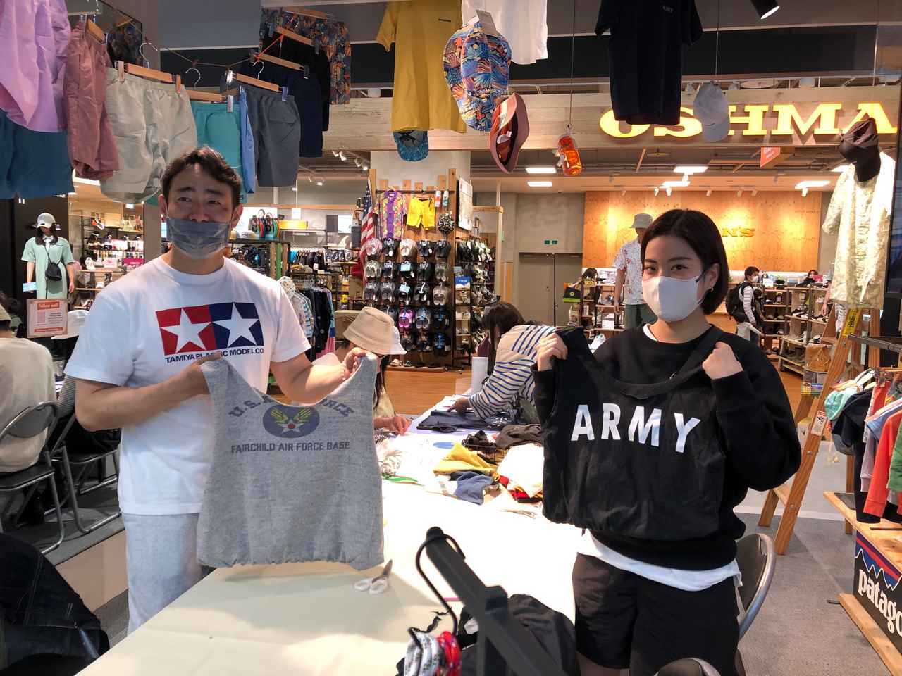 またラゾーナ川崎プラザ館外の店舗による販売やワークショップも。OSHMAN’Sは、店頭展示品や傷・汚れのあるシューズを特別価格で販売し、古着のTシャツを持参してエコバッグをつくるワークショップも開催する。