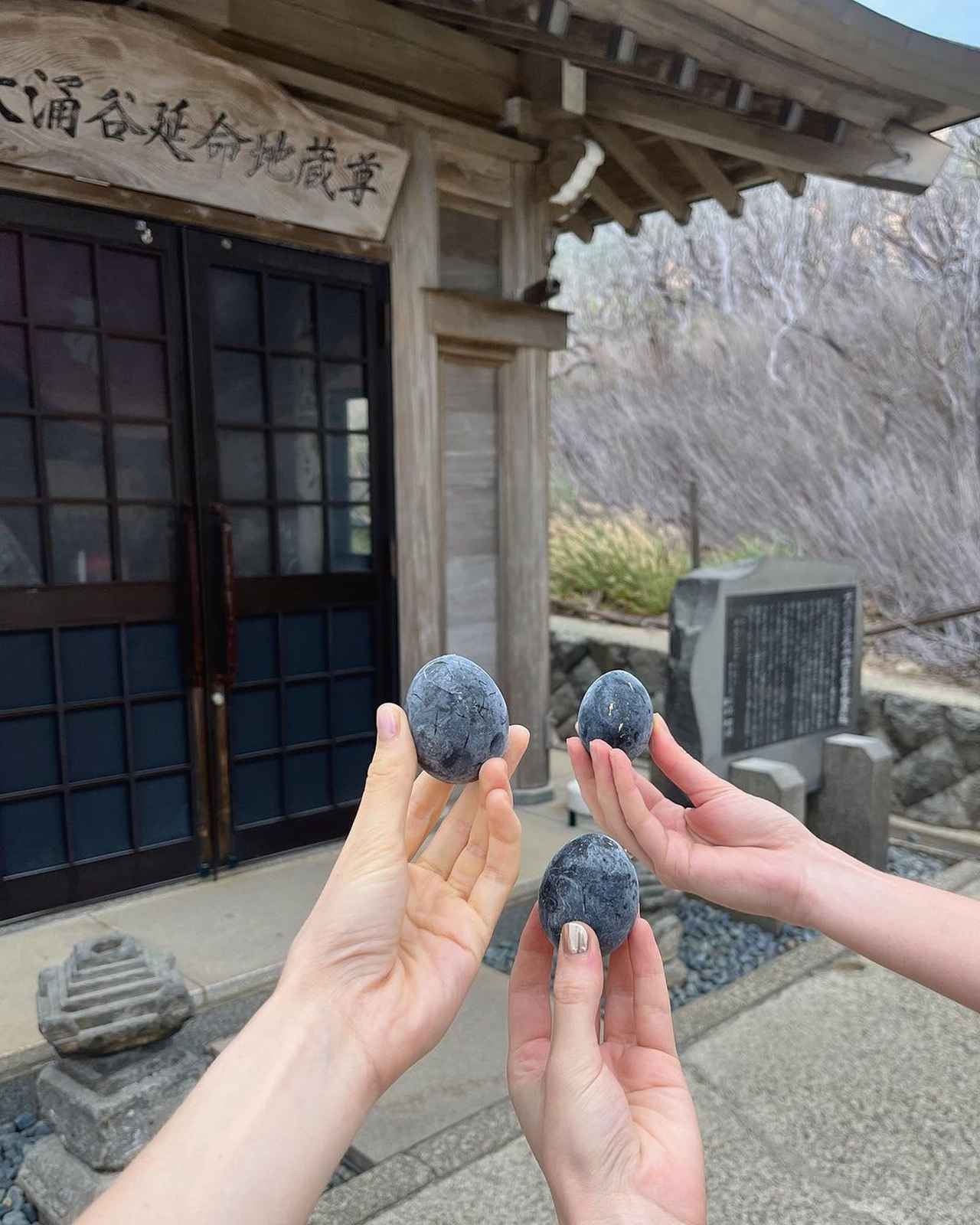 3人は旅館での滞在を含めて箱根を満喫したようで、旅館で食事を楽しんでいる写真や、「大涌谷くろたまご館」での記念写真、名物の「黒たまご」を持った写真などをアップした。