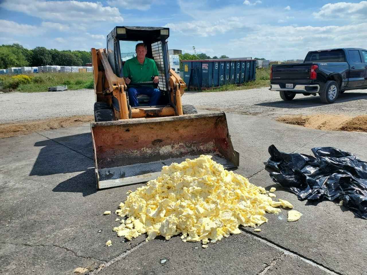 バター彫刻には、さまざまな理由で販売や消費に適さないバターが使用されており、お祭りでの展示が終わると、解体されたバターは酪農場へと運ばれる。