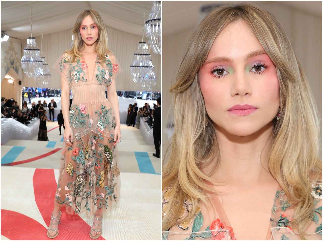 2023年5月に開催されたメットガラでスキが取り入れたのは、パステルカラーを複数使った上級者アイメイク。パステル調のミントグリーン、ラベンダーカラー、ピンクの3色を目元に使用し、目元を囲むCゾーンチークも取り入れた。カラフルながら統一感があり、お花畑みたいで可愛い。