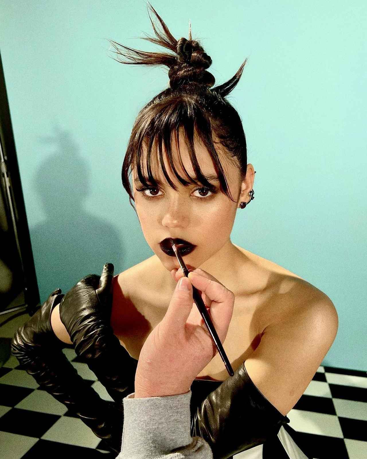 ゴスリップメイクを取り入れた姿が頻繁にキャッチされているメアリーのメイクは、アイメイクやチークはミニマルに抑え、ブラウンやブラックといったダークなカラーのリップを主役に。全体的にバランスがよく、やりすぎ感が出るのを防ぐことができる。